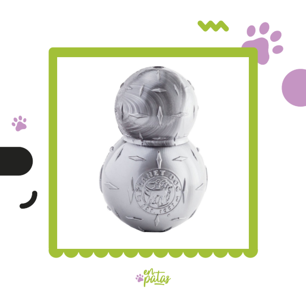 Como se usa? Lo podes rellenar con balanceado, o alimento natural húmedo, siempre tratando que el agujero de la base quede tapado o sellado con alguna pasta, por ejemplo queso untable. En caso de que uses balanceado, este va a quedar contenido dentro del juguete. Se puede freezar, de esta manera le vas a proporcionar a tu compañero perruno un helado riquísimo y horas de entretenimiento