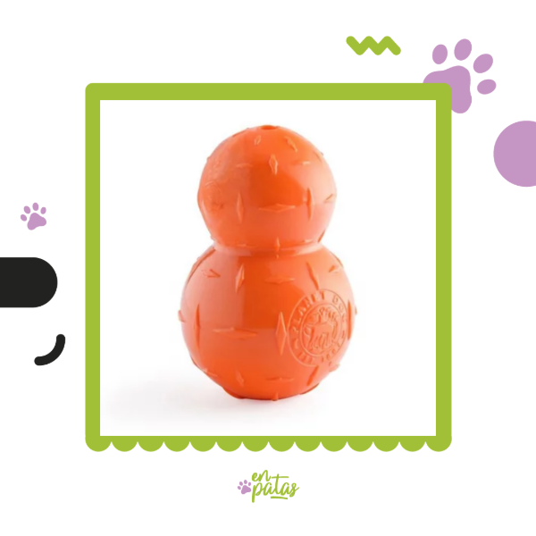 Como se usa? Lo podes rellenar con balanceado, o alimento natural húmedo, siempre tratando que el agujero de la base quede tapado o sellado con alguna pasta, por ejemplo queso untable. En caso de que uses balanceado, este va a quedar contenido dentro del juguete. Se puede freezar, de esta manera le vas a proporcionar a tu compañero perruno un helado riquísimo y horas de entretenimiento